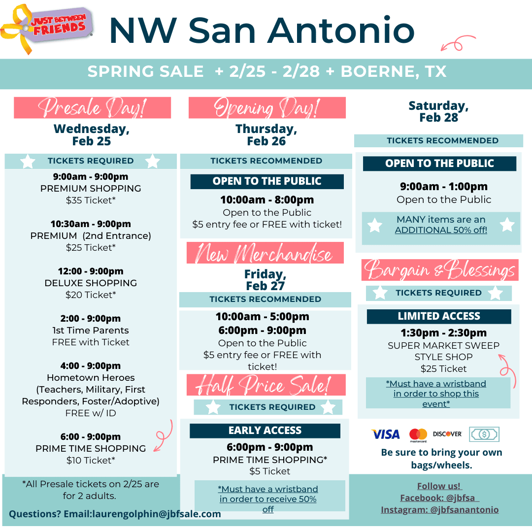 Shopping retail means hours in a mall with bored, crying kids—spending way more than you planned. And garage sales or social media buying can be disappointing and frustrating when items or connections aren't what you hoped they'd be. Shop Just Between Friends pop-up sales to save hundreds of dollars on new and gently-used clothes, toys, shoes, books and gear for all sizes—infant to teen, plus maternity—all in one place. Items are inspected for quality and safety which means great items at huge savings. You get stylish, confident, good-looking kids while saving money and time. That's smart!